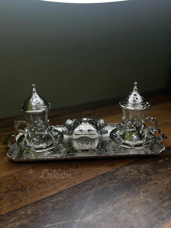Турецький подарунковий чайний набір Армуди на підносі, 2 персони, колір срібло